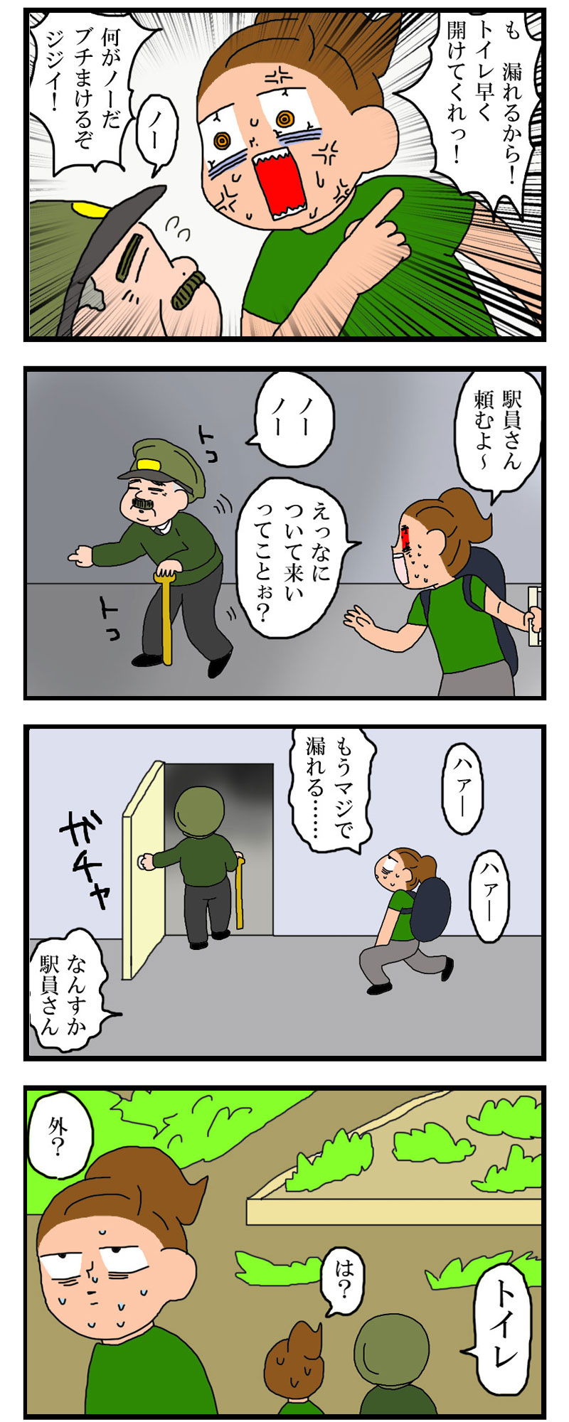 コーカサス!ジョージアで出会った変態と戦闘した話!4 2022年01月30日 こんにちは小西です!元バックパッカーで現在東京ひとり暮らしをいていて、過去の旅の事や日常をマンガにしています! その前の話 ① ② ③ 尿意で切羽詰まりすぎてブチ切れたことある?は?は?もうこの時は本当に本当に膀胱が限界を迎えて尿意で脳が支配され大変攻撃的になっておりました。そんな私をおじいさん駅員は他の扉に連れていき、その向こうは外でした。出てけってこと??と思ったら「トイレ」。トイレ!?⇒続きにほんブログ村 < 前の記事次の記事 > コメント コメントフォーム 名前 コメント 記事の評価 リセット リセット 顔 星 情報を記憶 コメントを投稿する